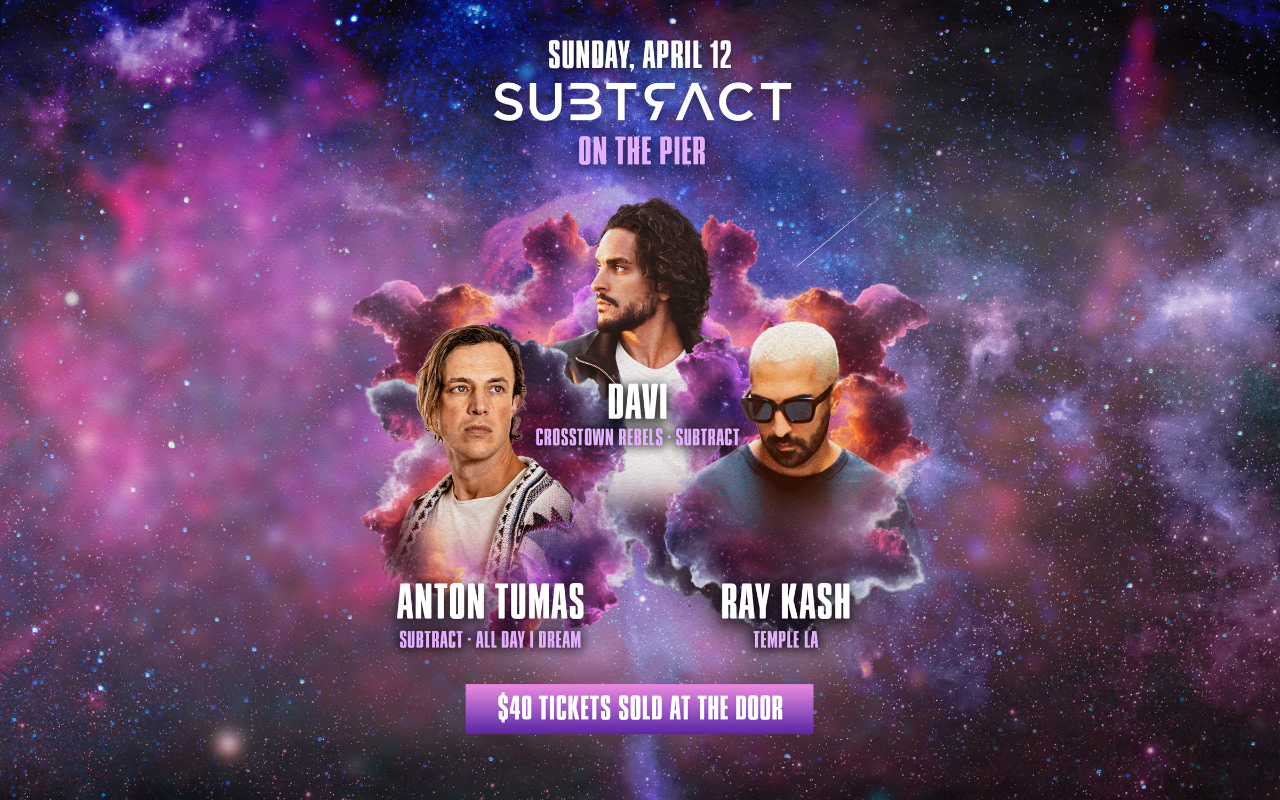 Since 2011, Subtract has been a home for music and events that age well: deep, hypnotic records instead of trend bait; daylight pier parties and beach gatherings where people actually connect; and sound systems tuned to perfection. Subtract On The Pier is now in its eleventh season on the Long Beach waterfront, and Love Long Beach Festival brings more than 10,000 people together each year around music and art.